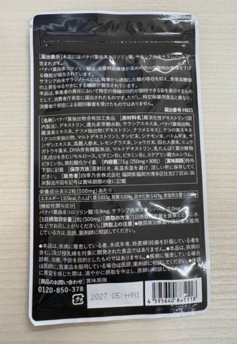 機能性関与成分として「バナバ葉由来コロソリン酸」と「サラシア由来サラシノール」の2つを配合しています。